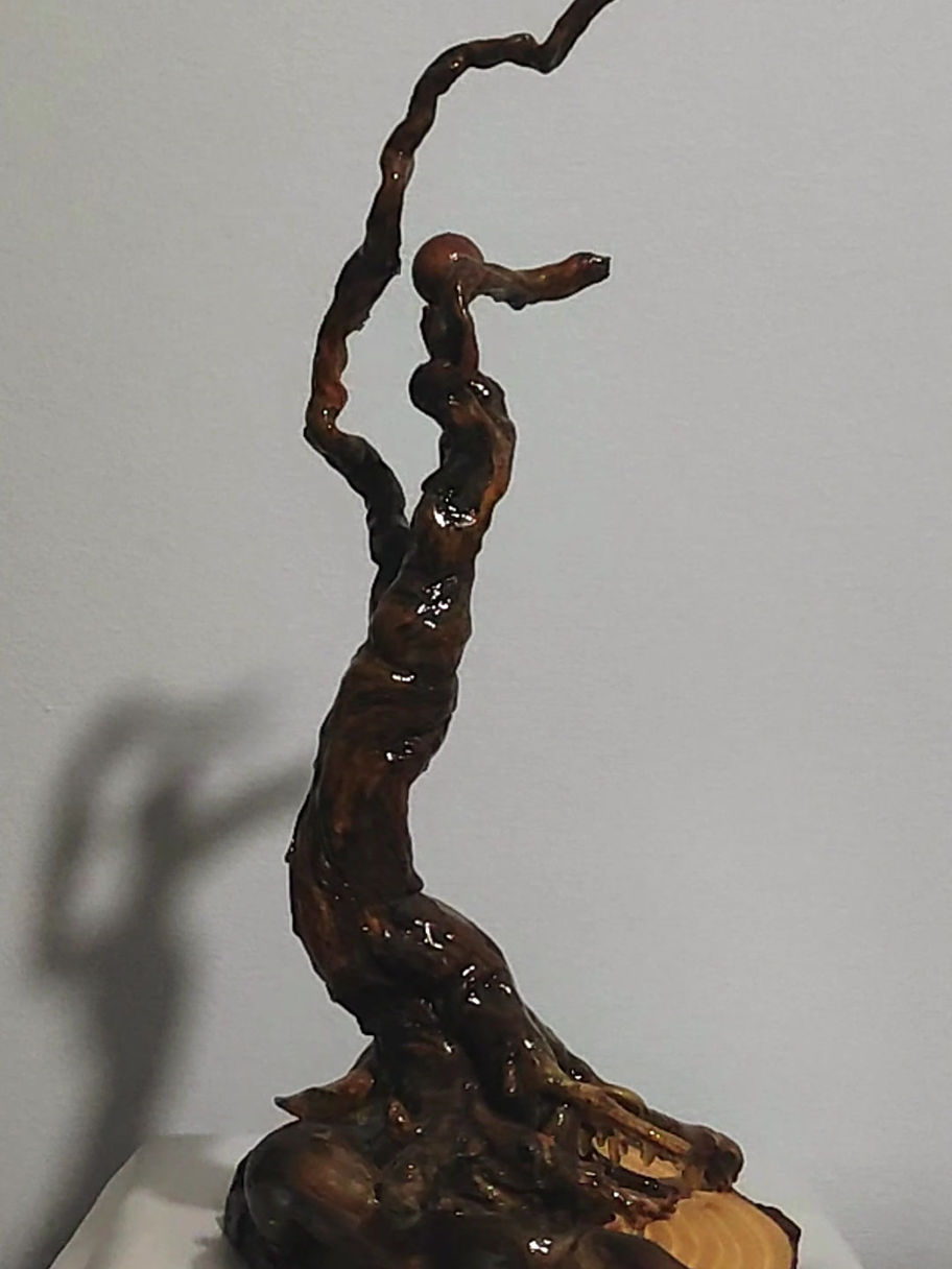 Questa scultura astratta di una ballerina, realizzata con legno alla deriva, è un’opera che cattura l’essenza del movimento e della grazia. Montata su una base ovale di legno, la figura si distingue per la sua finitura lucida e trasparente, ottenuta con resina epossidica atossica, che garantisce la conservazione del legno nel tempo. Ogni curva e torsione del legno alla deriva è stata sapientemente utilizzata per rappresentare la fluidità e l’eleganza di una danzatrice in movimento.Ideale per gli amanti dell’arte e del design, questa scultura è più di un semplice pezzo decorativo; è un simbolo di come la natura e l’arte possano fondersi per creare qualcosa di veramente unico. La resina epossidica non solo protegge il legno, ma esalta anche le sue caratteristiche naturali, rendendo ogni pezzo unico e irripetibile.Perfetta per aggiungere un tocco di eleganza a qualsiasi ambiente, questa scultura è adatta sia per interni moderni che per spazi più tradizionali. Con la sua bellezza senza tempo, è destinata a diventare il punto focale di ogni stanza, stimolando conversazioni e ammirazione da parte di ospiti e visitatori.Acquista ora e porta a casa tua un pezzo di arte che celebra la bellezza della danza e la resilienza della natura.